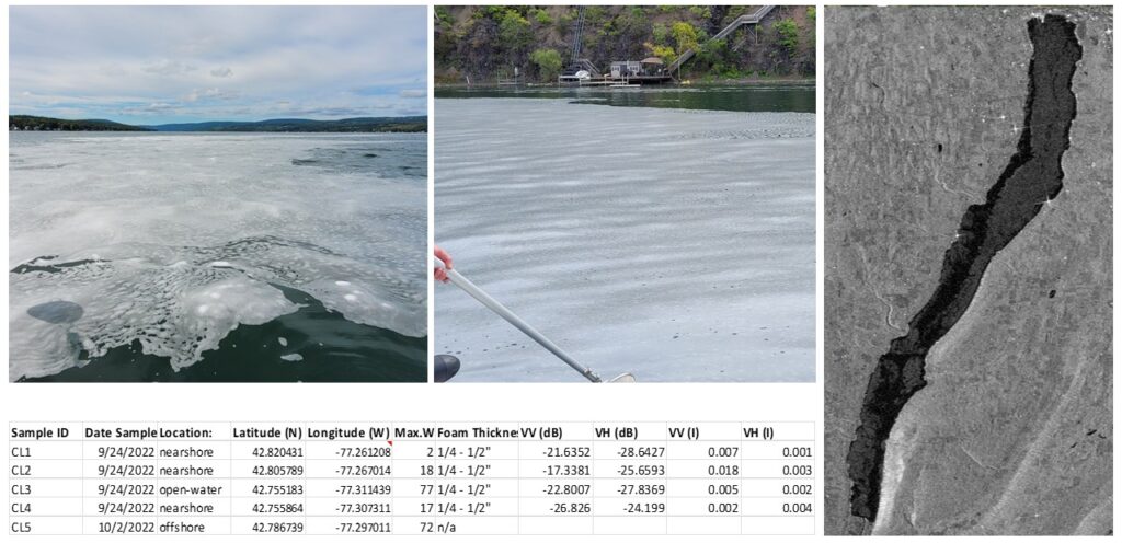 This confirms that SAR can effectively detect the extent of foam on the lake, even with full cloud cover.